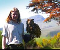 Falconry Scotland at Strathblane Country House Hotel Strathblane Falconry has a good selection of hawks, falcons, buzzards and owls that can be used for either demonstrations or hawking. Strathblane Falconry is situated in the grounds of Strathblane Country House Hotel near Glasgow and Loch Lomond offering short Falconry Breaks. Get a real flavour of Scotland, appreciate the beauty and grandeur of the area, and spend a day on the hills, with the heather underfoot and your hawk flying to your gloved fist. We can tailor the experience to suit your needs. Be it a hands on flying experience in the grounds of the Strathblane Country House. or a Hawk Walk - going out with a bird to do some hunting might be what you are looking for. A full Activity Day would include not only flying the birds and hunting, if desired, but also an insight into the equipment and training routines that are so much part of the experience. If you wish to take up the sport for yourself, a course looking at all aspects of husbandry, training and flying an owl or a raptor can be arranged over 3 or 5 days.